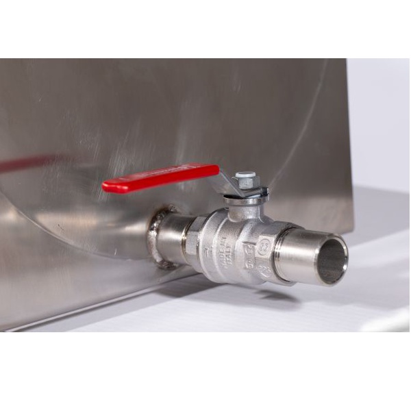 Nach der Butterbildung wird die Buttermilch sauber abgelassen. Während des Knetvorgangs kann kaltes Wasser zugeführt werden, bis das Knetwasser klar bleibt. So entsteht ein kompakter, sauberer Butterklumpen mit optimaler Haltbarkeit.